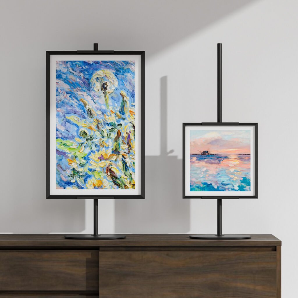 With its sleek and contemporary look, this stand adds a touch of modern elegance to any setting. Whether placed in your home, office, studio, gallery, or at a special event, it blends seamlessly with various décor styles while highlighting your displayed pieces.