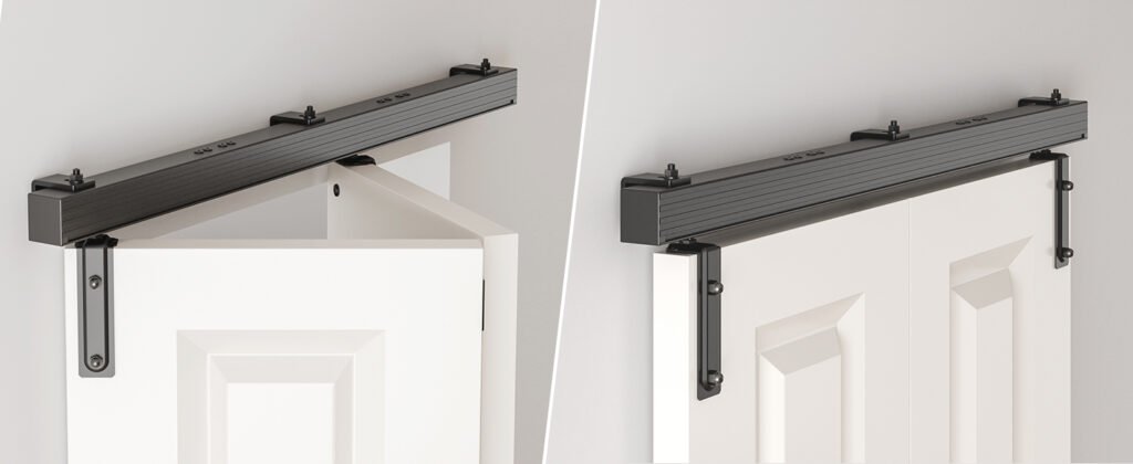 Transform your doorway with our innovative Box Rail Bi-Fold Barn Door Hardware Kit. This unique system masterfully combines the classic, robust look of a box rail barn door track with the incredible space-saving efficiency of a bifold mechanism. Ideal for closets, pantries, room dividers, or even exterior applications, this kit offers a stylish and practical solution for modern living.